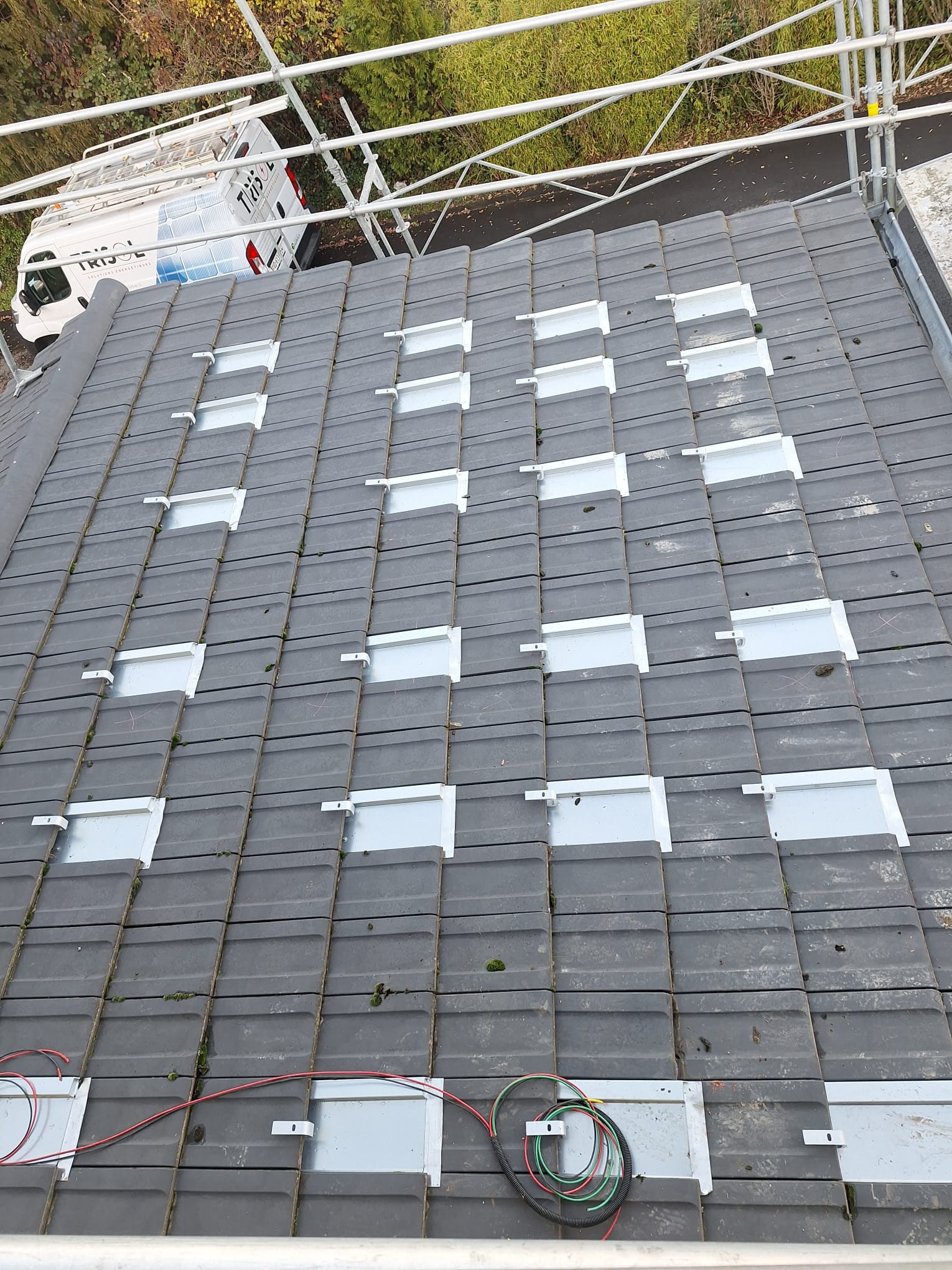 L’installation comprend 33 panneaux photovoltaïques de 475 Wc, associés à un onduleur hybride SolarEdge, des batteries Solaredge, un système de backup Solaredge et la nouvelle borne de recharge Solaredge »One EV Charger ». Cette configuration permet d’assurer une alimentation de secours en cas de coupure du réseau, tout en augmentant significativement l’autonomie énergétique du logement.